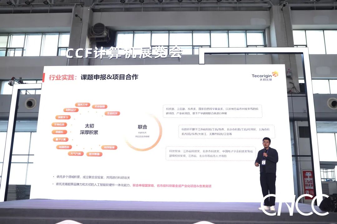 在大會開放舞臺環(huán)節(jié),太初代表上臺分享了太初教科研行業(yè)實踐,系統(tǒng)闡述了公司在教育科研領(lǐng)域的技術(shù)積累與實踐成果。