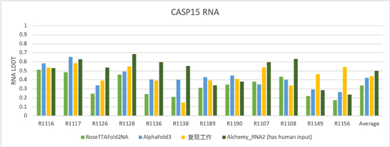 ▲圖4 Alphafold3復(fù)現(xiàn)工作與同類模型在CASP15上的精度對比