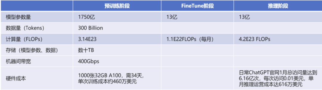 相關(guān)數(shù)據(jù)顯示,日常ChatGPT官網(wǎng)1月總訪問(wèn)量達(dá)到6.16億次——按照運(yùn)營(yíng)階段(以13億模型參數(shù)為例),參考每次訪問(wèn)0.01美元估算,單月推理運(yùn)營(yíng)成本達(dá)到616萬(wàn)美元,合算算力約4.2E23 FLOPs。