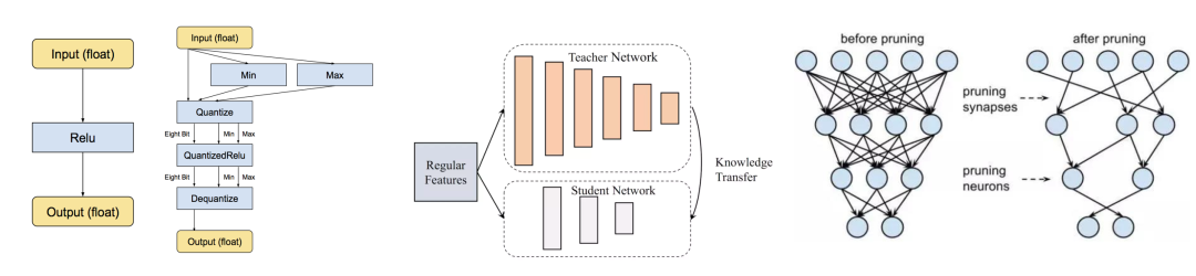 圖13 模型量化、模型蒸餾、模型剪枝算法示意,來自網(wǎng)絡(luò)