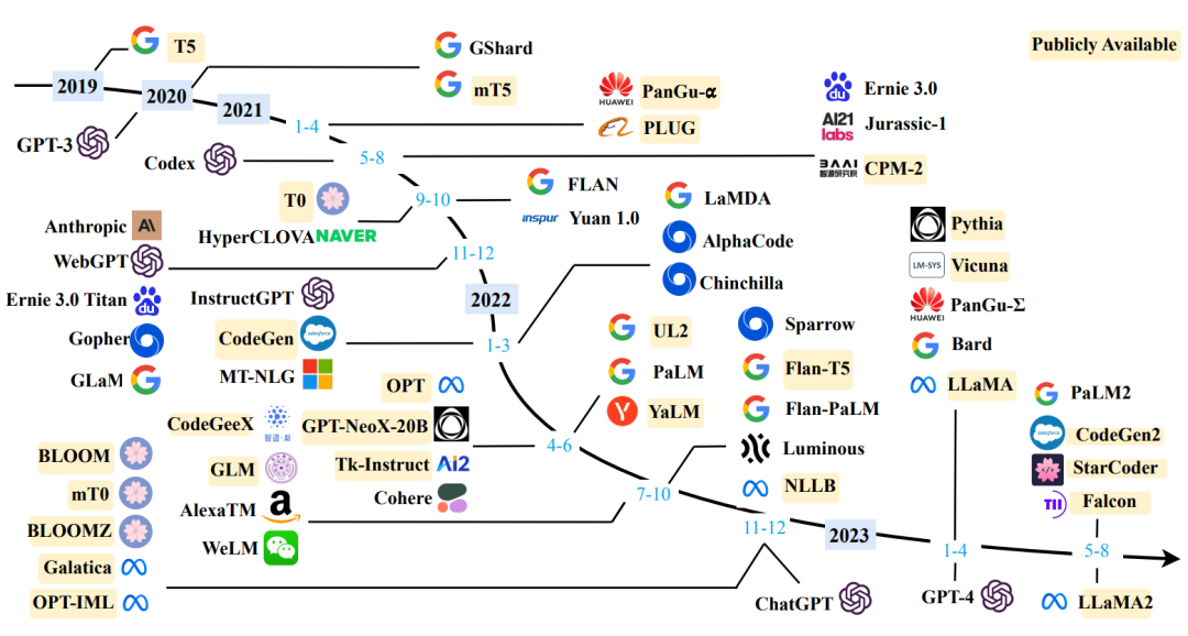 圖4 大語言模型近3年發(fā)展時間線,引用自[2]