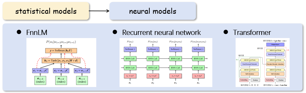 圖2 基于統(tǒng)計的語言模型和基于神經(jīng)網(wǎng)絡(luò)的語言模型