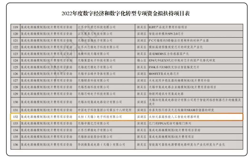 太初元碁入選2022年無錫市數(shù)字經(jīng)濟和數(shù)字化轉(zhuǎn)型發(fā)展資金擬扶持項目