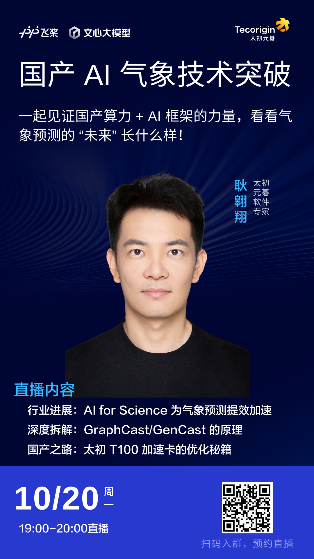 不管你是氣象從業(yè)者、AI 開發(fā)者,還是想了解 “天氣預(yù)報背后科技” 的普通讀者,都?xì)g迎來蹲直播。一起見證國產(chǎn)算力 + AI 框架的力量,看看氣象預(yù)測的 “未來” 長什么樣!