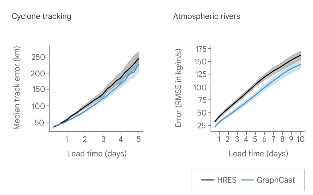 Graphcast模型和傳統(tǒng)HRES模型的效果對比