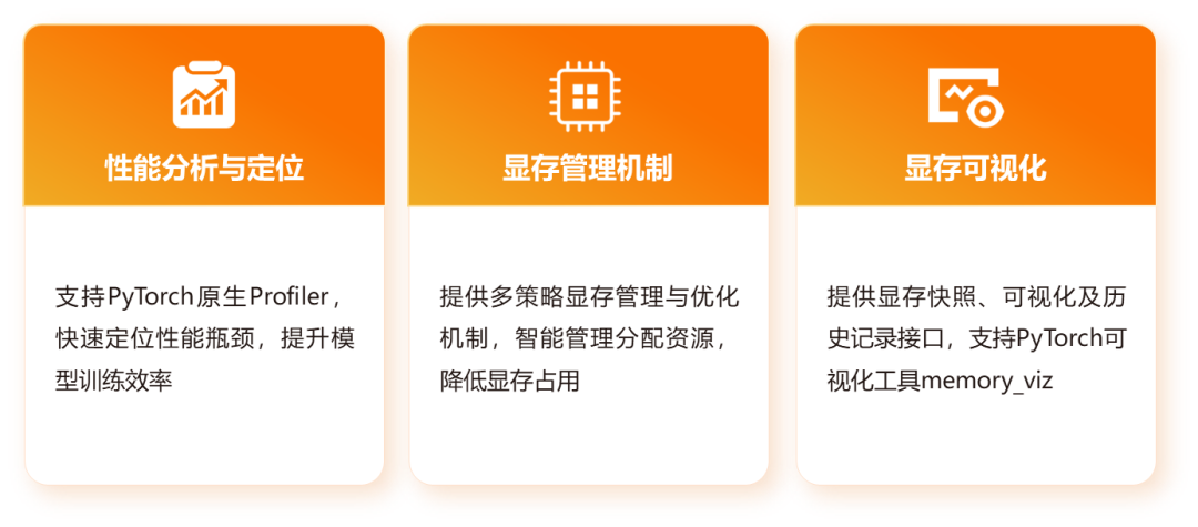 性能分析與定位:支持PyTorch原生Profiler,快速定位性能瓶頸,提升模型訓練效率。