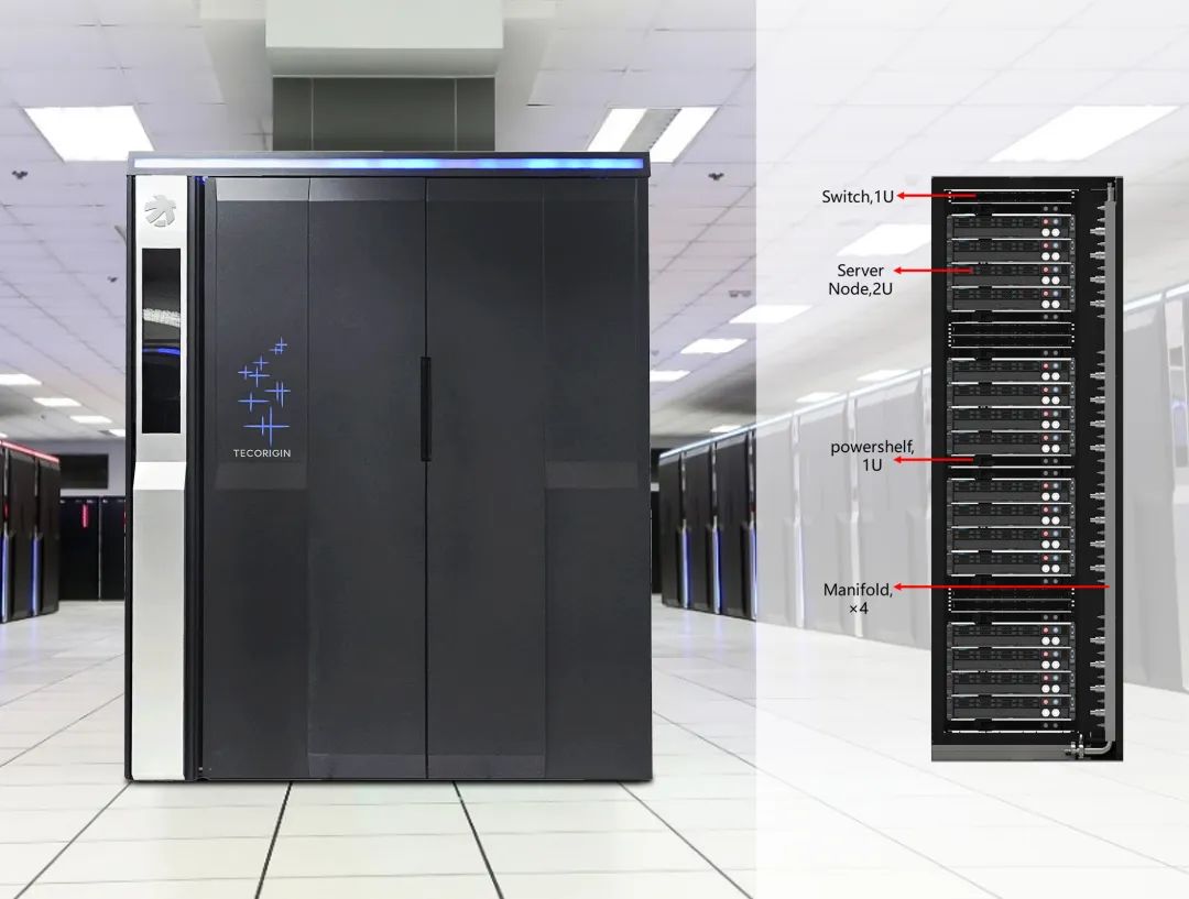 太湖之光A+ 預(yù)訓(xùn)練集群(智能超算系統(tǒng))以太初元碁系列智能加速卡為基礎(chǔ),聯(lián)合浪潮信息共同打造高密液冷智算服務(wù)器。單個機(jī)柜算力達(dá)到40P智能算力,算力密度國內(nèi)最高,采用集中式供電,單機(jī)柜功耗達(dá)100KW,于2024年第二季度完成交付。