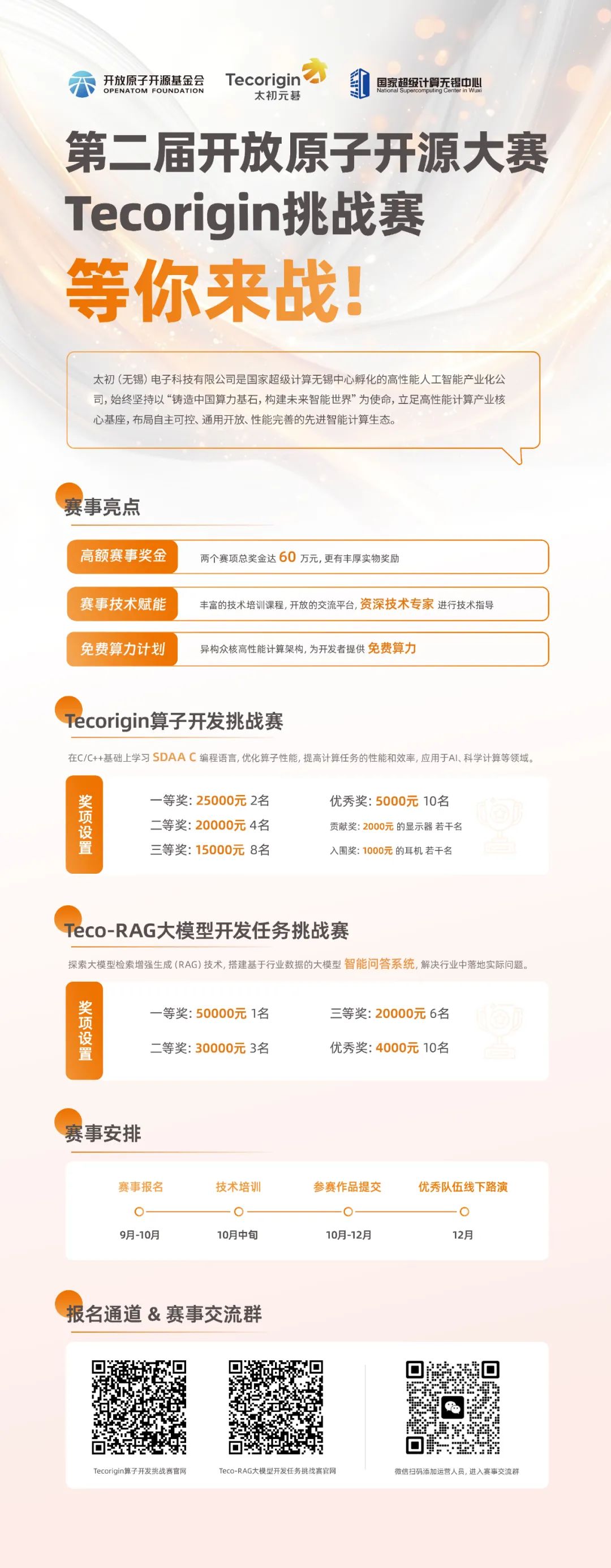 本屆大賽,太初元碁Tecorigin作為賽事共建方,為廣大開發(fā)者帶來了兩項(xiàng)賽事:Tecorigin算子開發(fā)挑戰(zhàn)賽和Teco-RAG大模型開發(fā)任務(wù)挑戰(zhàn)賽。